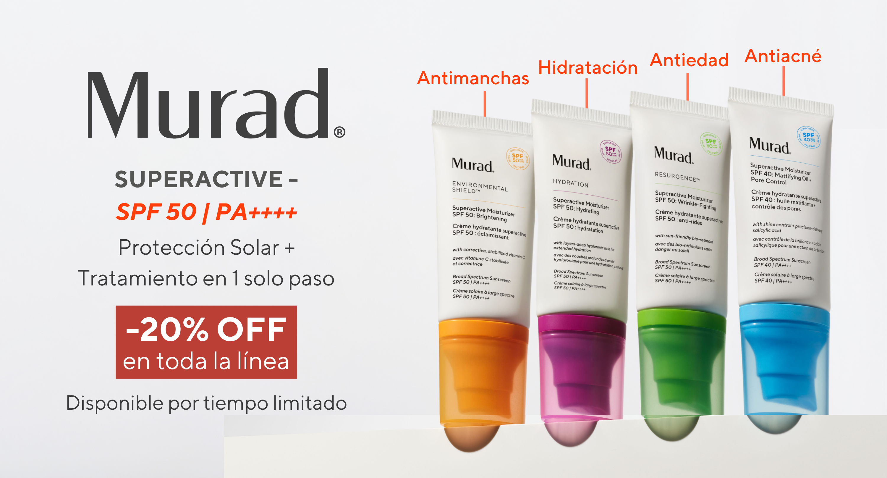 Vendedor:Murad Superactive SPF 50 Moisturizer - Protector Solar 3 en 1 de Alta Hidratación con Ácido HialurónicoMurad- Precio regular